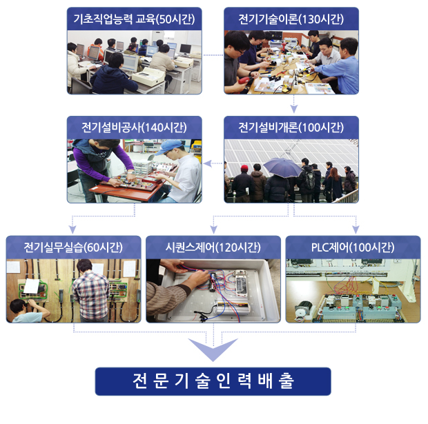 이론 및 전기설비실습 교육을 병행 실시하여 현장적응력을 최대화